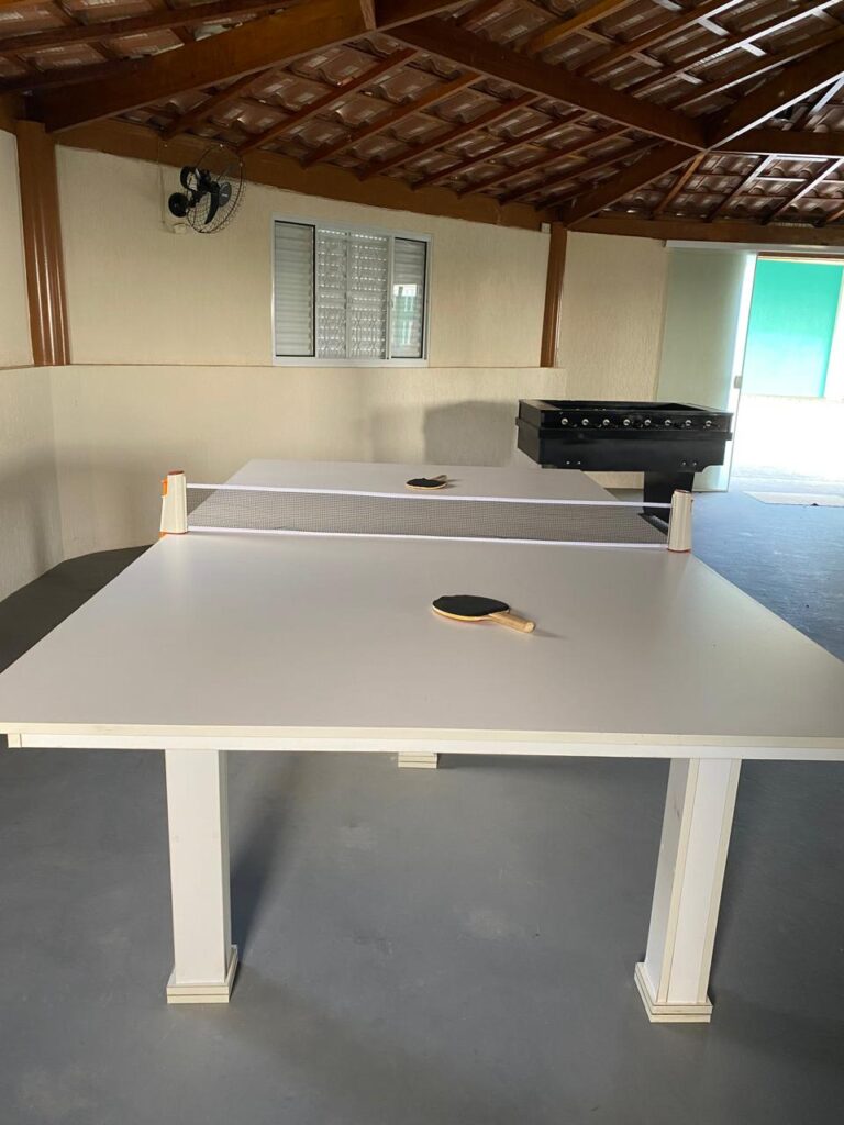Desfrute de momentos de pura diversão com nosso salão de jogos completo, que inclui mesa de bilhar, pebolim e pingue-pongue. Prepare deliciosos churrascos na churrasqueira e aproveite os amplos espaços ao ar livre.